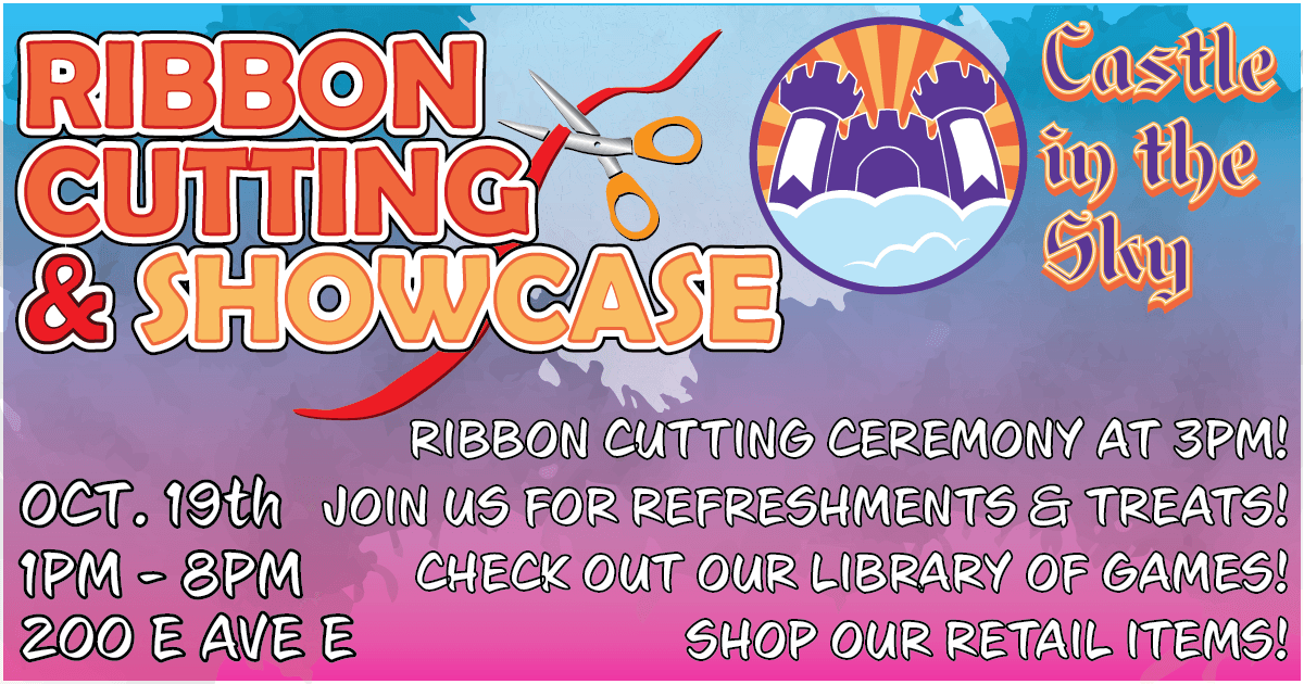 From 1pm – 8pm stop by the Castle to learn more about our tabletop library, arcade vault, services, and shop our retail items!